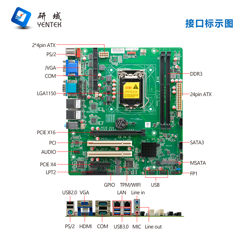 ◆支持LGA1150架构的4th Intel Celeron/Pentium/Core i3/i5/i7处理器 ◆Intel Q85芯片组 ◆2*DDR3 DIMM内存插槽,支持双通道,最大支持16GB ◆1*VGA,2*HDMI显示接 ◆2* Intel I210AT千兆网卡 ◆2*SATA3.0,1* MSATA, 1*TPM扩展槽(可以扩展4个RS232) ◆1*PCIEx16,1* PCIEx4,2* PCI ◆6*RS232串口,COM1/2支持RS485/422 ◆7*USB2.0,4* USB3.0