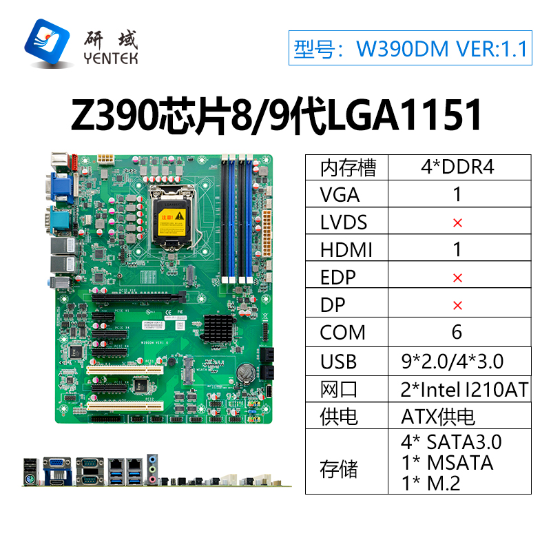 ◆支持LGA1151架构的8th/9th Celeron/Pentium/Core i3/i5/i7处理器 ◆Intel Z390高速芯片组 ◆4*DDR4 DIMM, 支持双通道2133/2400/2666MHz内存,最大支持64GB ◆1* VGA,2* HDMI1.4 ◆2* Intel I210AT千兆网卡, ◆1* PCIE3.0 x16,3* PCIE3.0 x4,1* PCIE3.0 x1,2* PCI ◆4* USB3.0,9* USB2.0,6* RS232串口,COM1/2支持RS485/422 ◆1* TPM,1*LPT ◆ATX电源供电